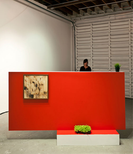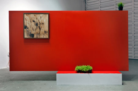 Video Sculpture formica, paint, IKEA plant. Home depot grass HD projector, HD media player self powered speaker